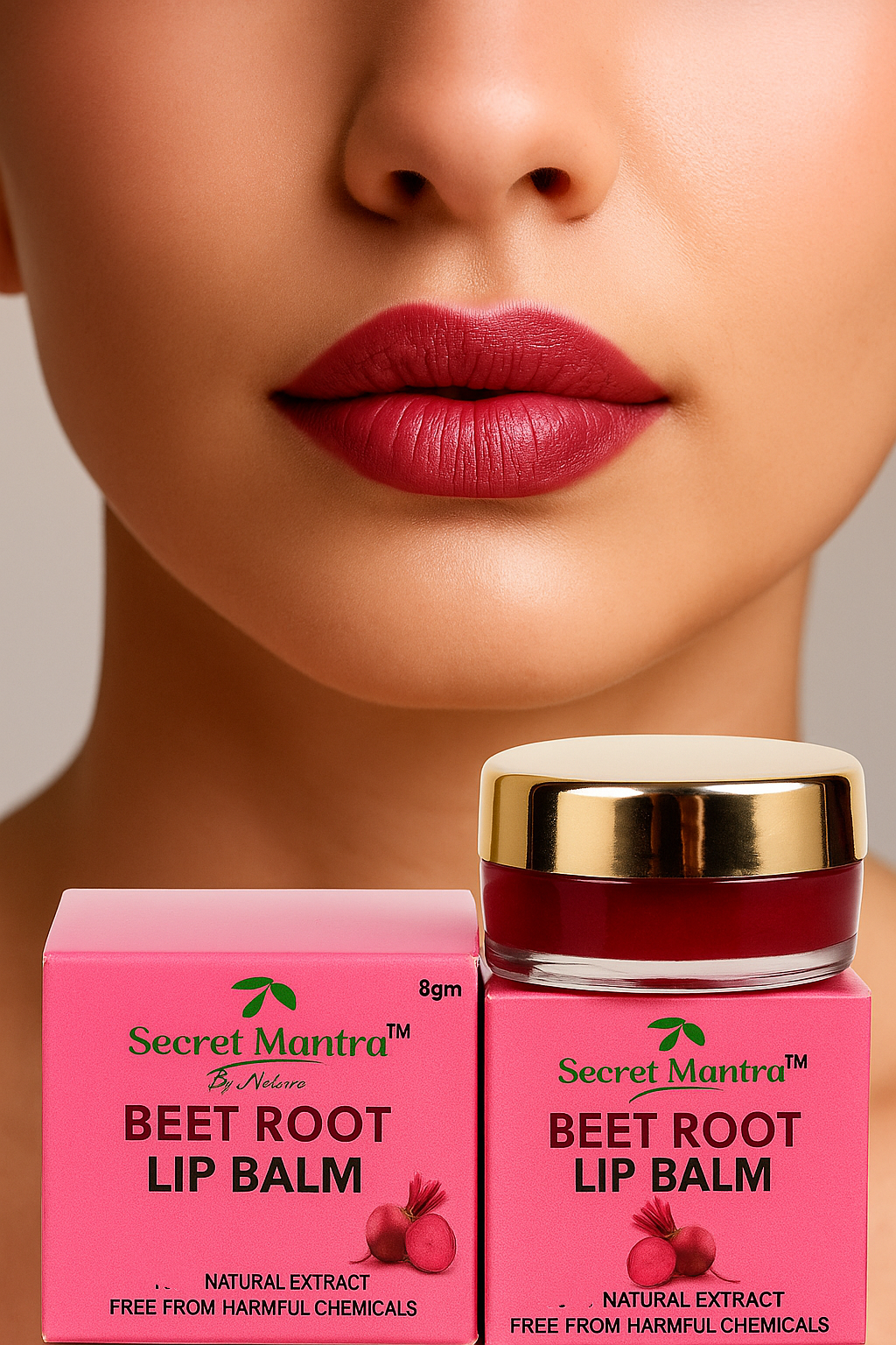 Secret Mantra Beetroot Lip Balm Pack of 2 (8g each) – Natural butters & oils for soft, tinted, nourished lips. Chemical-free daily care.